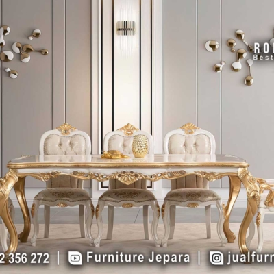 *Harga Hubungi CSGolden Set Meja Makan Royal Mewah Golden Set Meja Makan Royal Mewah adalah pilihan sempurna untuk menghadirkan nuansa keagungan dan kemewahan dalam ruang makan Anda. Terbuat dari kayu mahoni berkualitas tinggi, set ini menggabungkan keindahan alami kayu mahoni dengan sentuhan mewah finishing Gold yang memukau. Desain mewah dengan ukiran Royal yang indah dan kain motif… selengkapnya