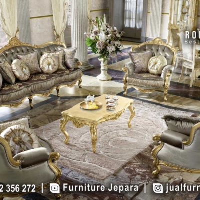 - Desain klasik Eropa yang memancarkan keanggunan, cocok untuk berbagai gaya dekorasi ruang tamu. Selain itu, detail ukiran emas pada kaki meja dan sandaran memberikan sentuhan kemewahan yang berbeda dari sofa biasa. Sebab itu, produk ini mampu menjadikan ruang tamu Anda sebagai pusat perhatian. Selain itu, penggunaan fabric velvet pada jok menghadirkan sensasi lembut dan nyaman saat bersantai. Akibatnya, tamu dan keluarga akan betah berlama-lama menikmati suasana ruang tamu yang mewah dan elegan. Selanjutnya, pillow dan sandaran tangan yang nyaman memastikan aspek fungsional tetap terjaga, mendukung kenyamanan maksimal setiap pengguna. Akhirnya, finishing gold plating yang berkilauan menambah aura glamor yang tiada duanya. Kalau Anda mengutamakan kemewahan dan keindahan, sofa tamu mewah ini pasti memenuhi semua harapan Anda.