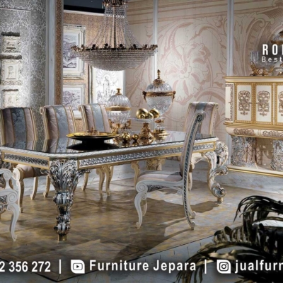 *Harga Hubungi CSModel Ruang Makan Luxury Royal Mewah Model Ruang Makan Luxury Royal Mewah adalah perwujudan elegansi dan keindahan dalam dunia mebel, memberikan sentuhan mewah ke ruang makan Anda. Dibuat dengan kayu mahoni berkualitas tinggi, setiap elemen desainnya dipertimbangkan dengan cermat untuk menciptakan harmoni yang memukau. Finishing Gold Kombinasi Putih memberikan kilau kemewahan yang memancar, menambah daya… selengkapnya