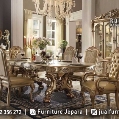 Desain kaki ukiran yang artistik menambah pesona klasik meja ini, memberikan kemewahan yang langsung terlihat. Dengan enam kursi yang nyaman bersandaran tinggi dan dilapisi kain bludru, setiap hidangan akan terasa lebih istimewa. Jika Anda menginginkan suasana yang lebih hangat dan mengundang, meja ini adalah pilihan yang tepat. Kemolekan ornamen ukiran sekaligus fungsionalitasnya menjadi alasan utama mengapa Anda pantas memiliki Meja Makan Mewah Terbaru ini di rumah.