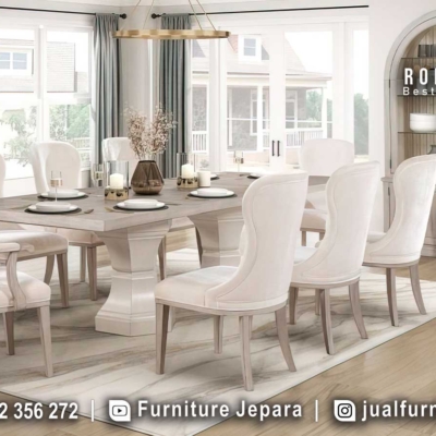 Set Meja Makan Jepara Ukir Mewah Set Meja Makan Jepara Ukir Mewah menghadirkan keanggunan dan kemewahan meja makan dalam ruang makan Anda. Dibuat dari bahan kayu mahoni pilihan, set ini mengusung kemewahan alami kayu yang memberikan sentuhan kehangatan. Finishing Putih Kombinasi Silver memberikan nuansa modern dan elegan yang membuat set meja makan ini menjadi pusat… selengkapnya