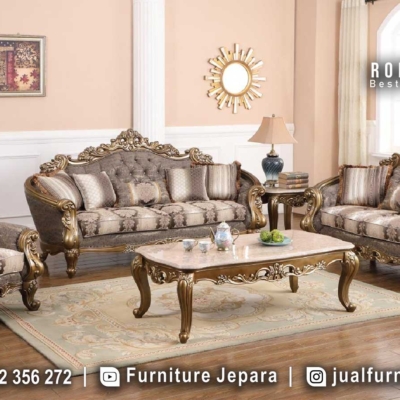 Dengan rangka kayu jati berkualitas, detail ukiran klasik yang halus, serta finishing gold doff, produk ini mampu meningkatkan nuansa ruang tamu Anda menjadi lebih mewah dan berkelas. Sebut saja, sofa ukir Jepara ini menghadirkan nuansa klasik Eropa yang timeless namun tetap relevan untuk berbagai gaya dekorasi, dari tradisional hingga modern minimalis. Oleh karena itu, Anda tidak sekadar membeli furnitur, tetapi juga memperoleh karya seni yang penuh makna dan keindahan.